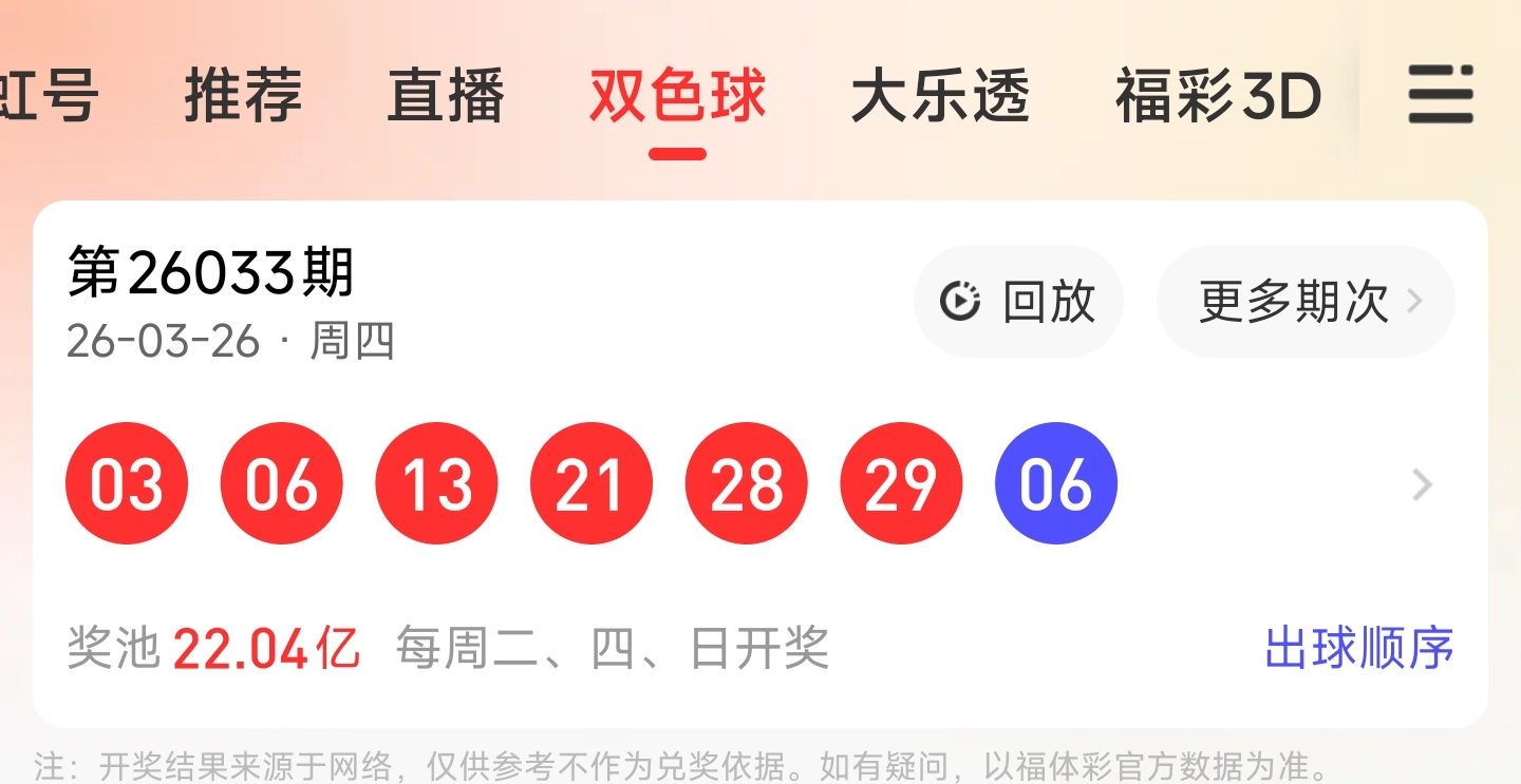 第26033期双色球文章中推荐中命中3,13,21,29等4个红球,红球金胆中21,龙头中3,凤尾中29。