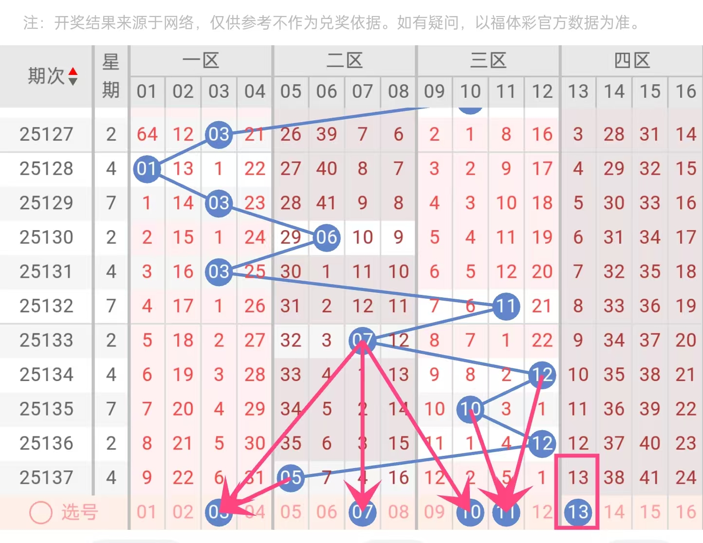 二、蓝球推荐:03、07、10、11、13