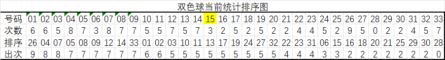 红球15码大底统计顺序:26,04,08,14,33,01,02,03,10,11,13,17,19,24,32