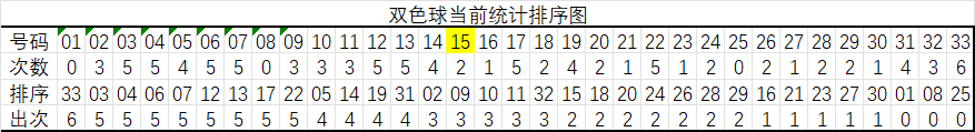 红球15码大底统计顺序:33,03,04,06,07,13,17,22,05,14,19,31,02,09,10