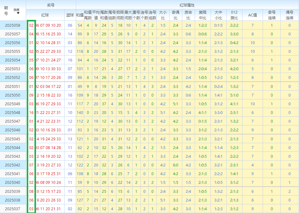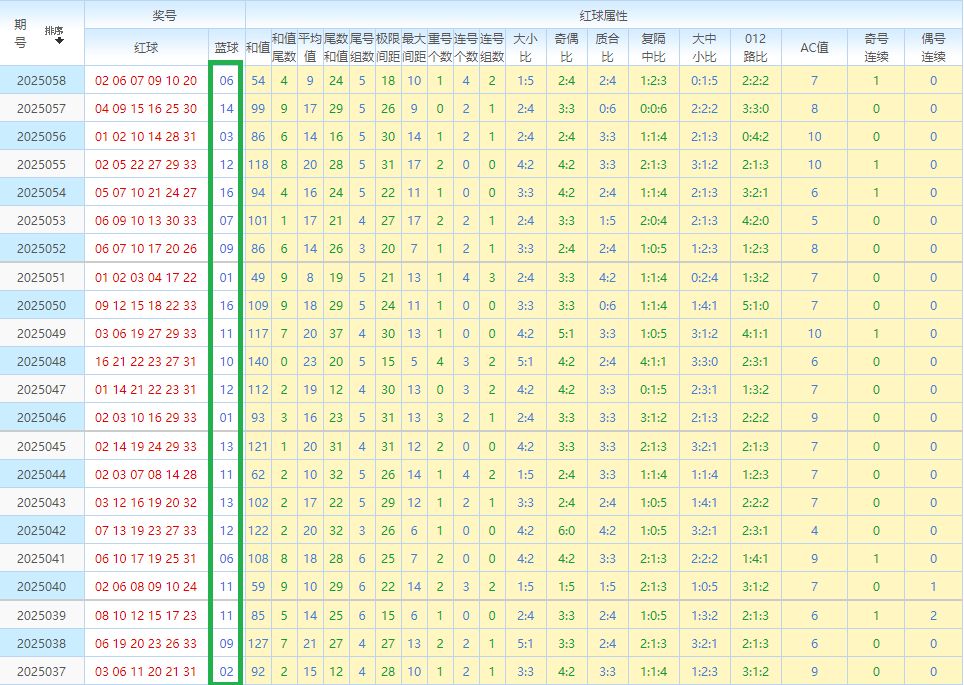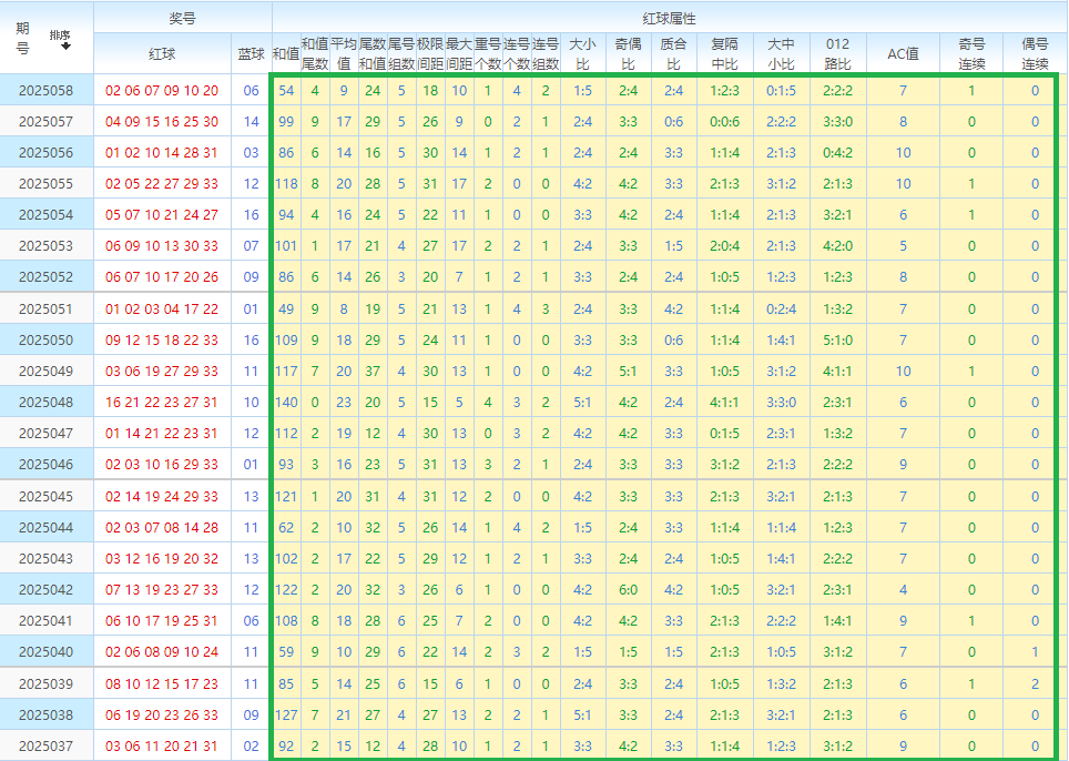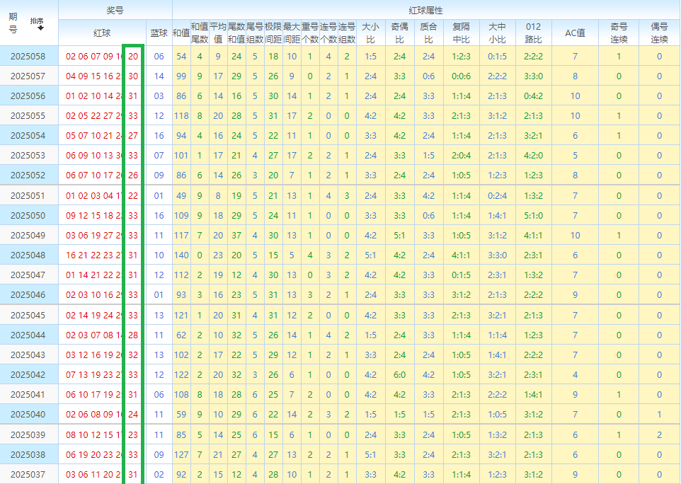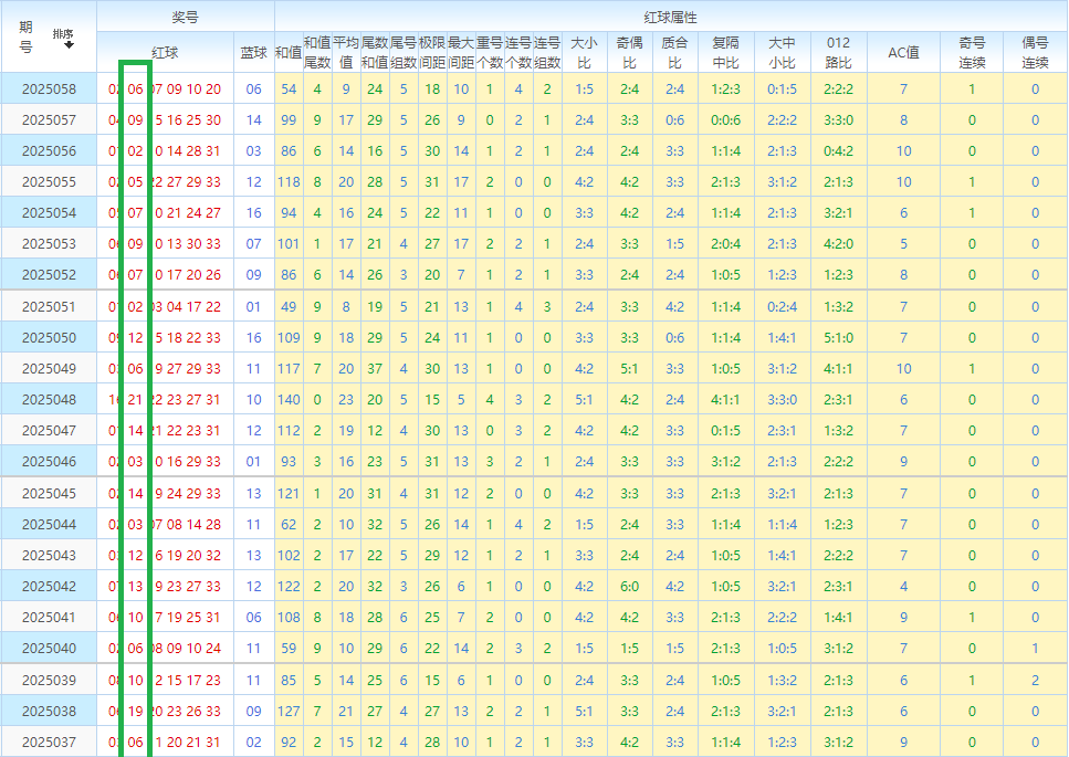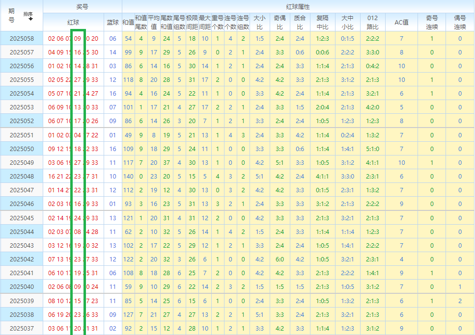 先回顾双色球第25058开奖号码:02 06 07 09 10 20—06。其中红球奇偶比为2:4。