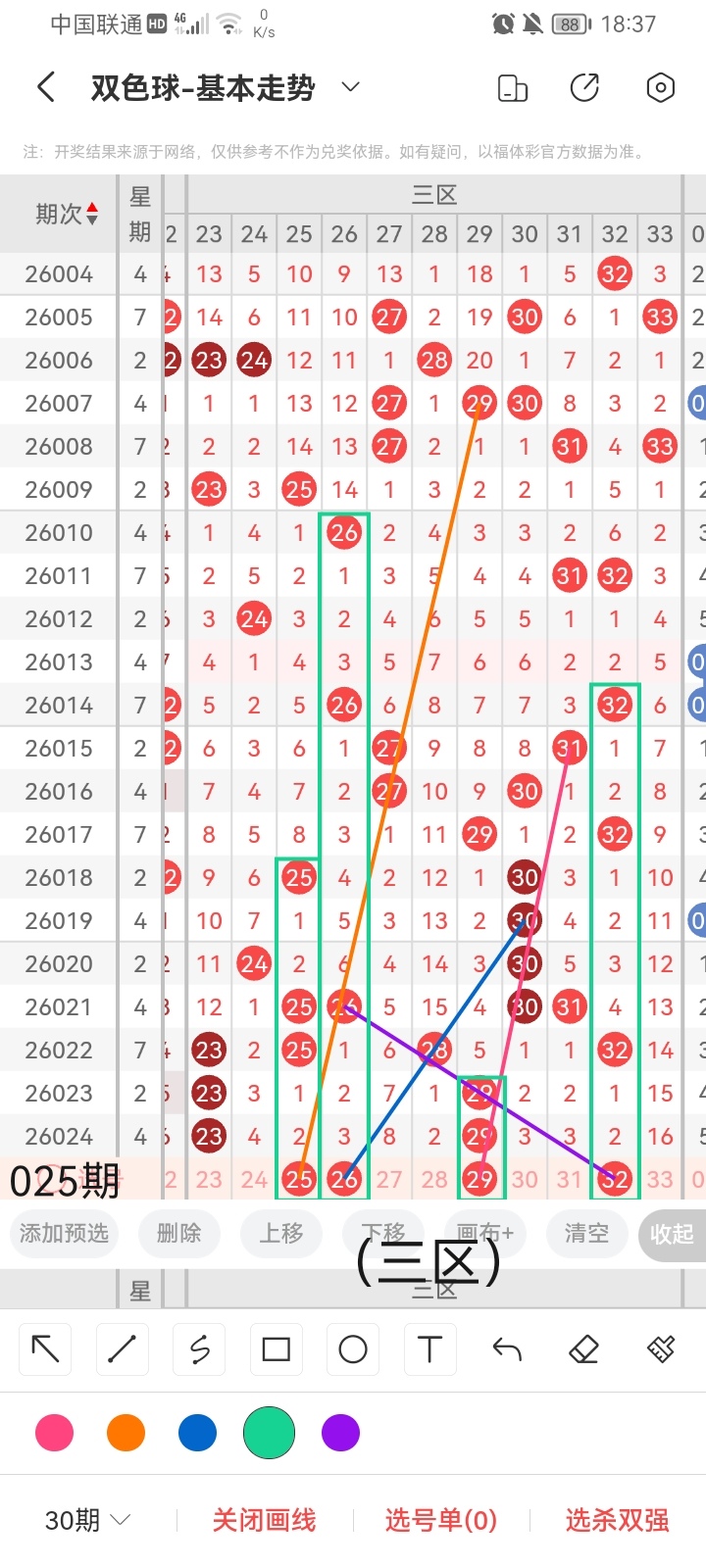 通过以上对上期的简单回顾,下面进入双色球第2026025期(下面简称本期)的选号分析: