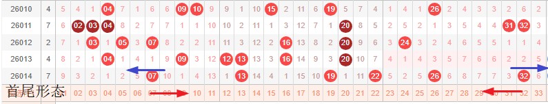 如图所示:首尾制约平衡组范围依次为:推拉缩,缩推? 本期形态范围优先选择红色压缩首尾。由于上期号码已经进入新走势第1期,目前处在新走势第2期,利用常规起号形成拉伸还是压缩就是走势正反方向。