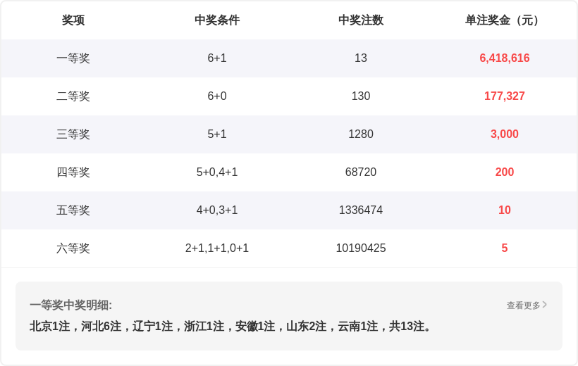 双色球25149期开奖结果01 02 04 06 22 30 + 10,奇偶比1:5,质合比2:4,跨度29,蓝球号码大小为大号。