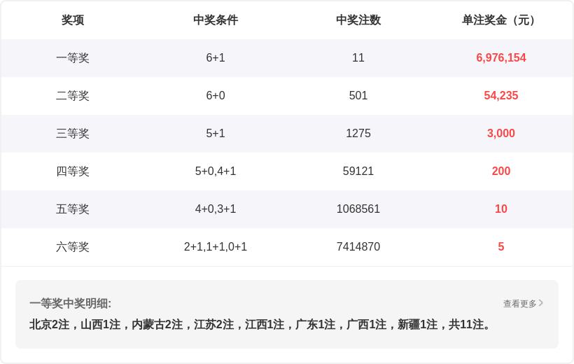 | 期号 | 开奖号码 | 第一位 | 第二位 | 第三位 | 第四位 | 第五位 | 第六位 |