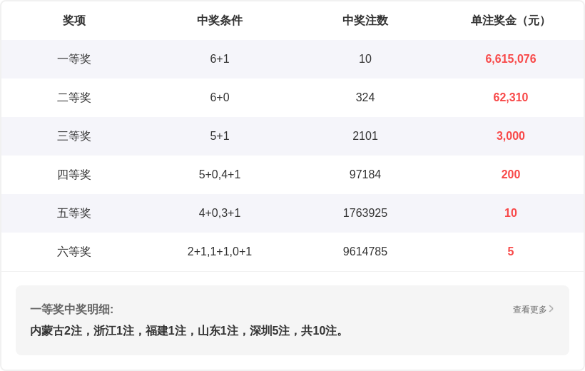 | 期号 | 开奖号码 | 第一位 | 第二位 | 第三位 | 第四位 | 第五位 | 第六位 |