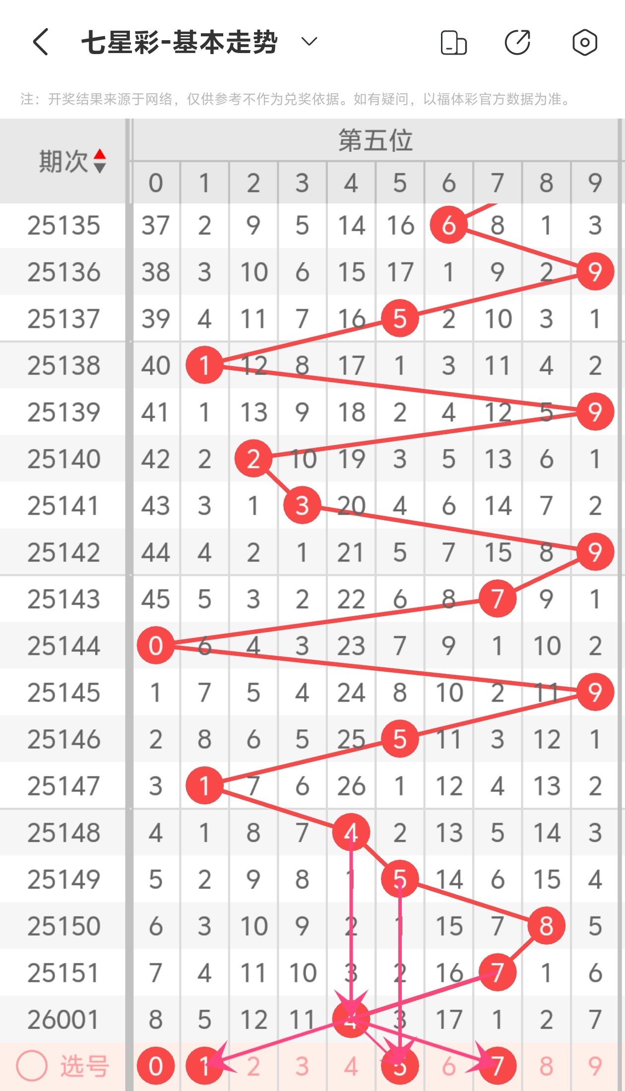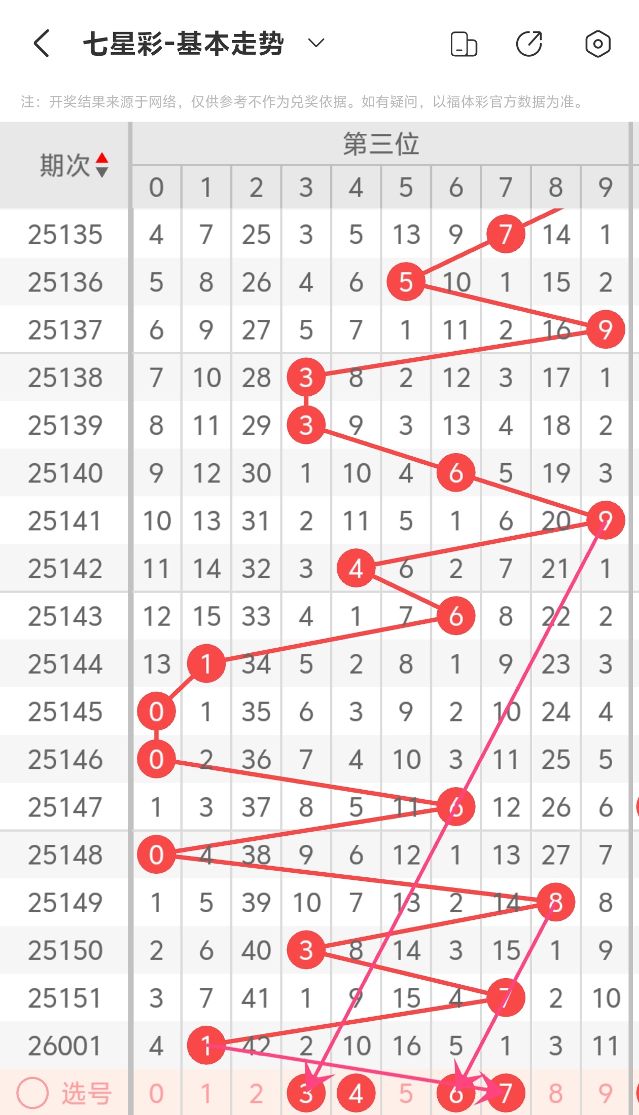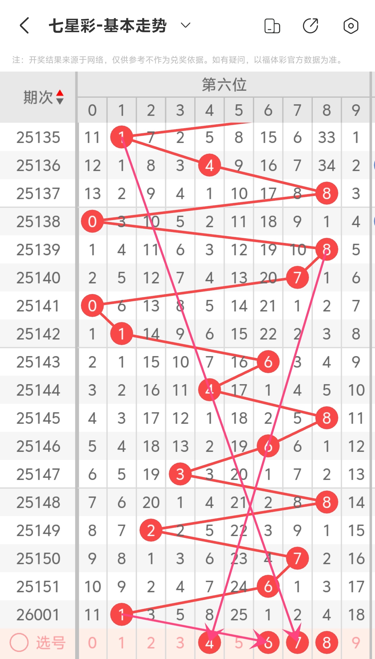 下面是七星彩的六位走势图分析