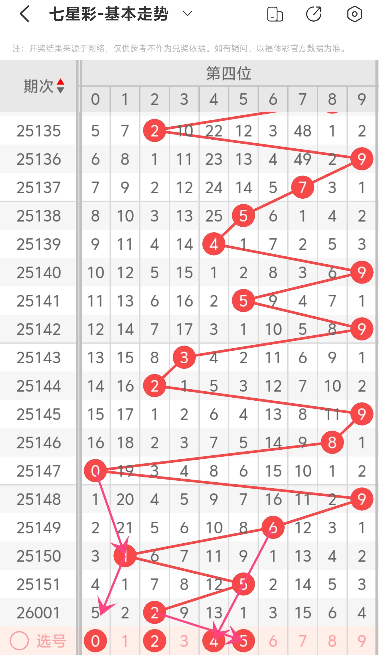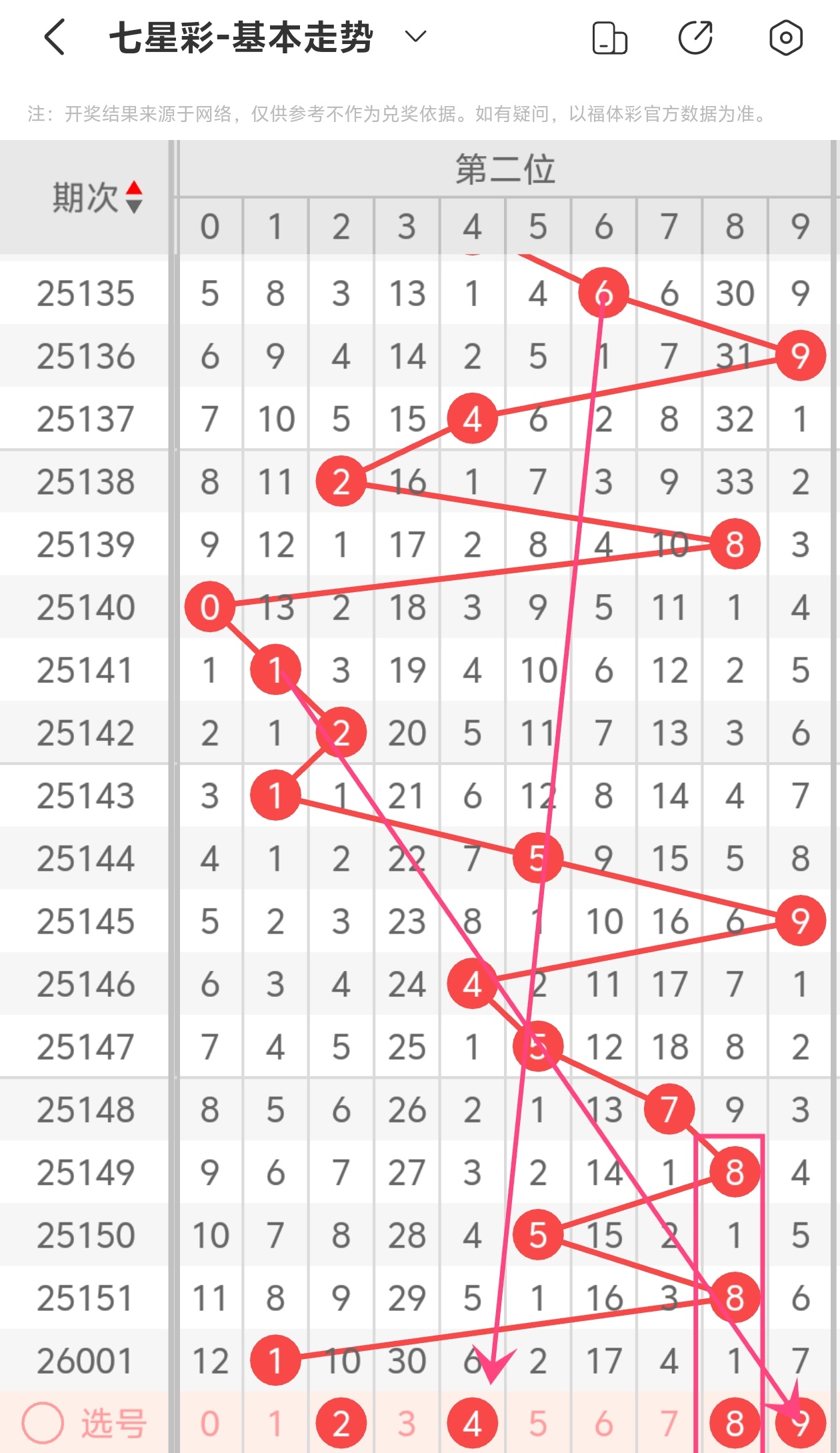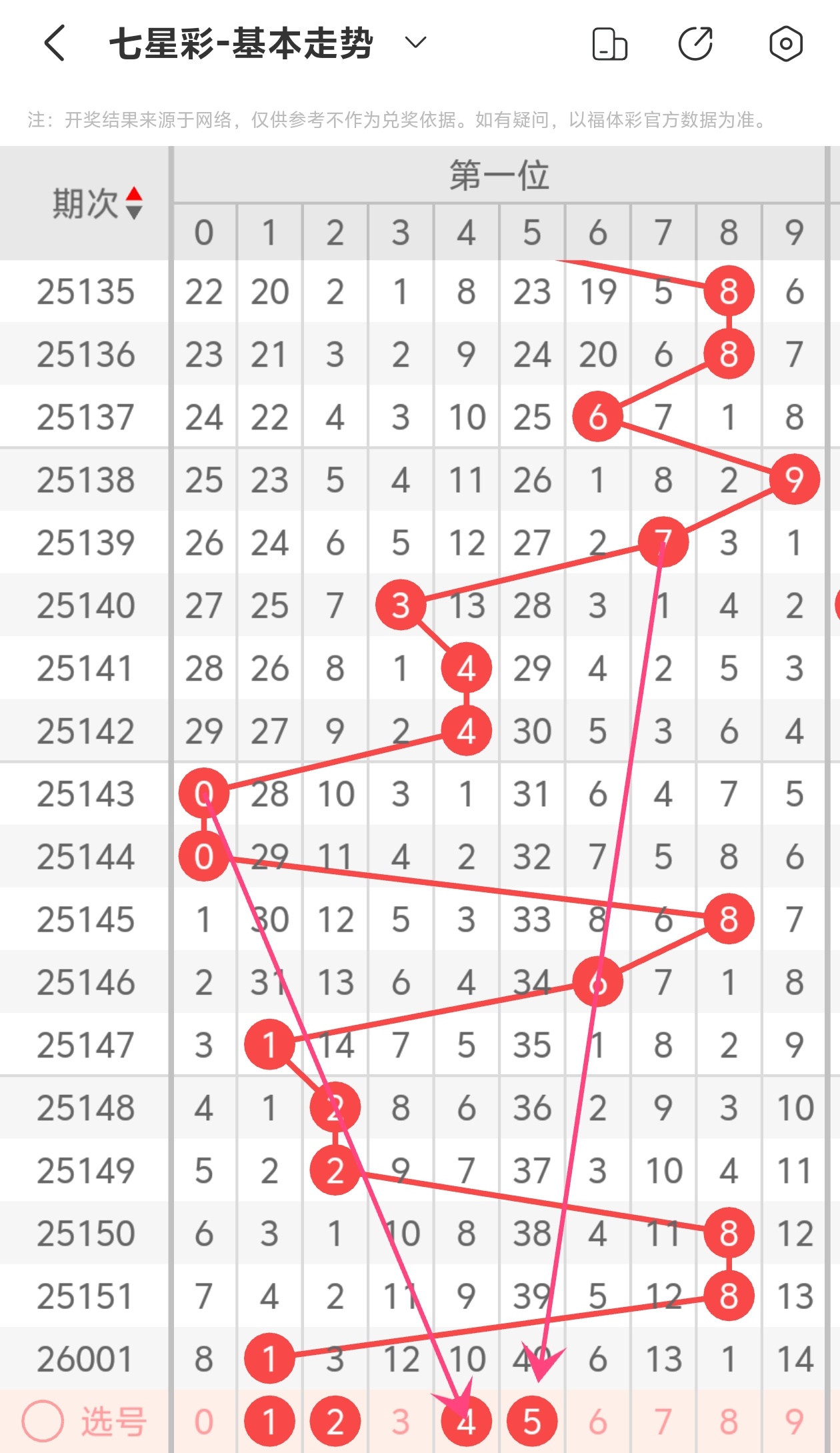 下面是七星彩的六位走势图分析