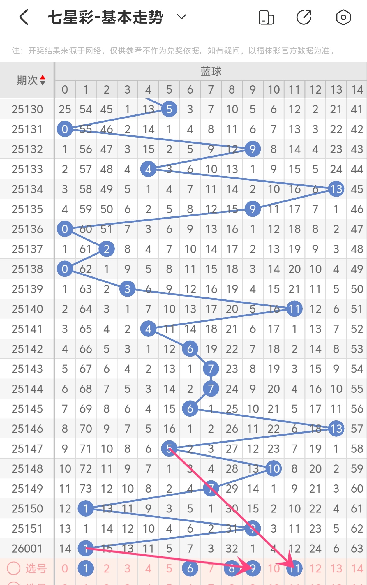 下面是七星彩的蓝球走势图分析
