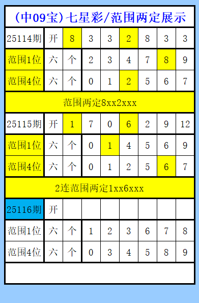 七星彩第116期图文(中09宝),范围两定展示,2连上期中范围1xx6xxx