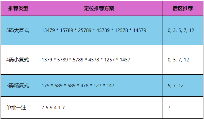 • 后区推荐(均衡策略)0, 3, 5, 7, 12。覆盖0、1、2路,兼顾冷热。