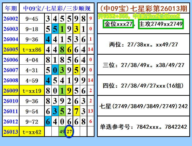 七星彩第014期综合图文(中09宝),单选推荐,视频上期中主攻9xx2金xxx2