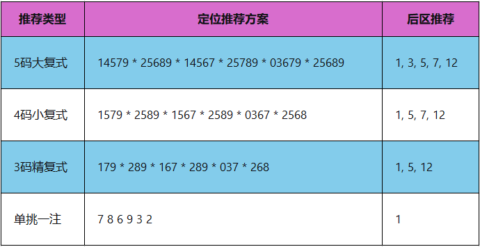 后区大底参考:1, 3, 5, 7, 12