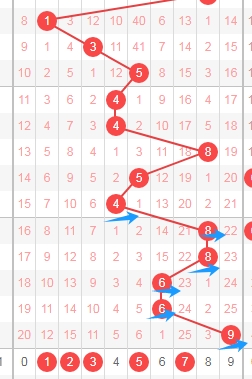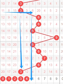 上图是体彩七星彩从左到右第一位走势图,我在上面走势图中标注出来的数字都是质数12357,从质数数字和合数数字来分析,你们看上走势图中标注出来的蓝色小箭头就知道,最近合数数字连续开出了6期,那么本期个人觉得开出质数数字的概率比开合数的概率要大,关注第一位出质数12357,个人最看好数字235。