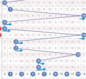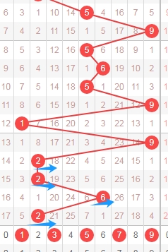上图是体彩七星彩从左到右第七位走势图,我在上面走势图中标注出来的蓝色小箭头你们会发现最近第七位数字开出的偶数居多,开出的奇数字局少,那么本期关注第七位数字出奇数1 3 5 7 9 11 13,个人最看好数字3 5 7 9。