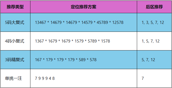 后区:胆码7,属于近期温热号(近10期出现3次),且1路号码近期活跃。