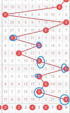 上图是体彩七星彩从左到右定位第六位走势图,我在上面走势图中标注出来的数字都是质数12357,看上面走势图中标注出来的蓝色小圈圈就知道,最近这位数字开出的合数多,质数少,尤其最近连续4期开出的都是合数,那么本期这位数字可以关注出质数12357。