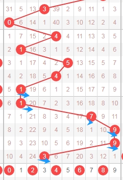 上图是体彩七星彩蓝球开奖号码走势分布图,我标注出来的红色小箭头表示0路球蓝球号码已经连续遗漏了10期,0路球蓝球号码数字有0 3 6 9 12,那么本期或者近期大家还是要留意蓝球0路球数字。