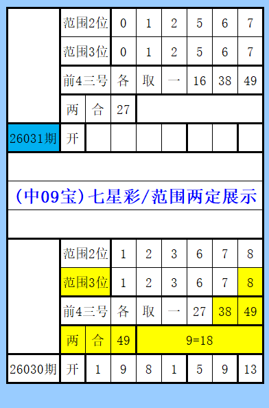 七星彩(中09宝)两定推荐