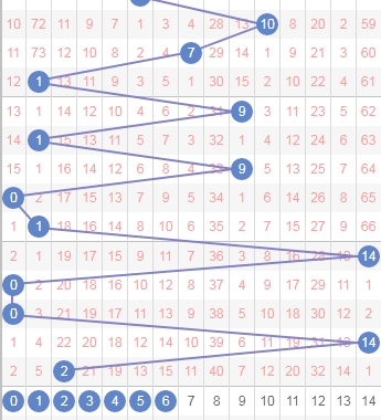 从大小跨度来分析,上图是体彩七星彩开奖号码走势图中从左到右第七位,最近第七位数字开出的跨度都大,连续开出的跨度大,开出的跨度小的次数少,那么本期这位数字关注出小跨度,出小跨度的话,那么范围就是0123456。