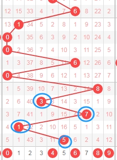 上图是体彩七星彩从左到右定位的四个数字分布走势图,我在上面走势图中标注出来的数字0 4 6 8 9都是合数,因为你们看我在上面走势图画出来的蓝色圈圈都是质数,最近连续开出了四期质数,那么本期个人觉得第三个数字可以去关注出合数。