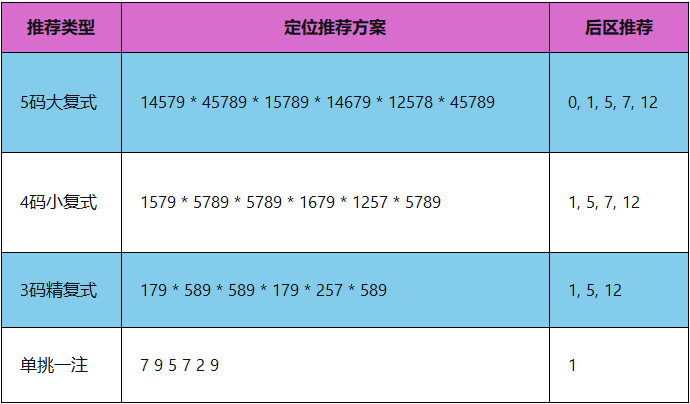 后区推荐(动态均衡策略):0, 1, 5, 7, 12。覆盖0、1、2路,兼顾冷(