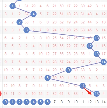 上图是体彩七星彩蓝球开奖号码走势分布图,我在上面走势图中标注出来的红色小箭头0尾数的蓝球分别是数字0和10,到本期为止这0尾数的蓝球已经遗漏了13期,那么根据这个遗漏周期分析的话,本期或者近期大家还是要留意0尾数的蓝球号码数字。