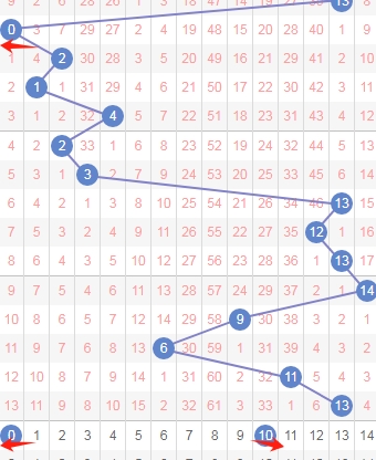 上图是体彩七星彩蓝球开奖号码走势分布图,我在上面走势图中标注出来的红色小箭头表示跨度,上期蓝球是跨度2,属于小跨度,那么本期出大跨度的机会是有的,关注大跨度的数字0 1 2 3 4 5 6。