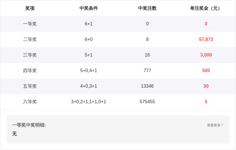 | 期号 | 开奖号码 | 和值 | 跨度 | 奇偶比 |