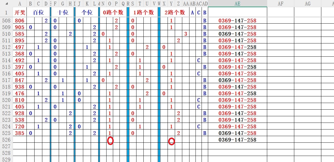 如上图2,012路分析01路尾走比较好,关注0369147尾;