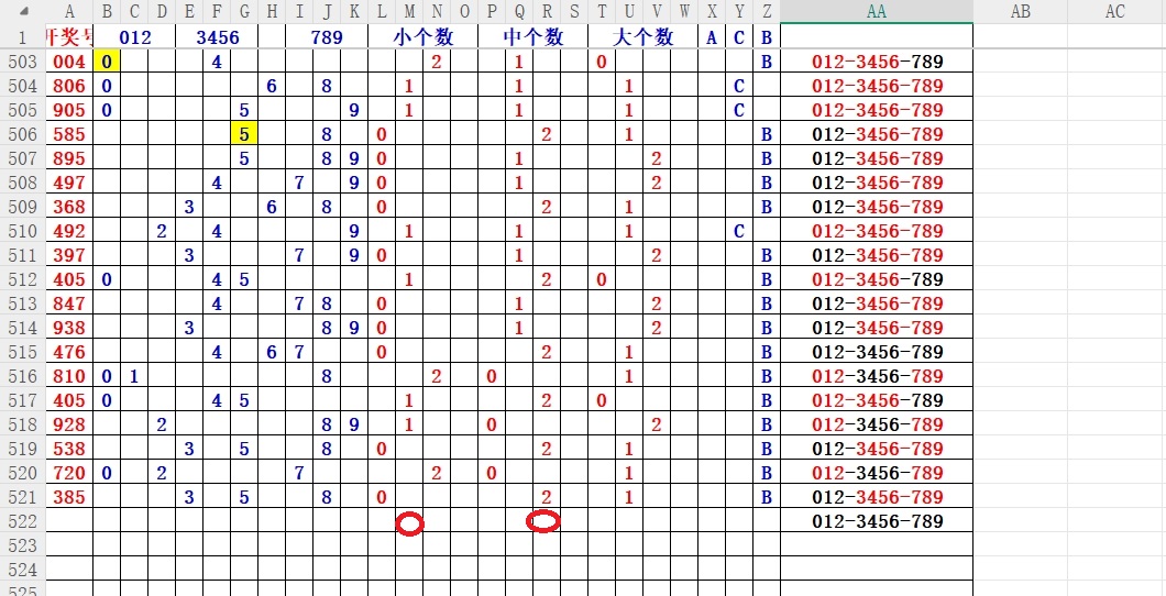 如上图56,大中小分析,中号3456出胆码,最低1个胆码,重点34