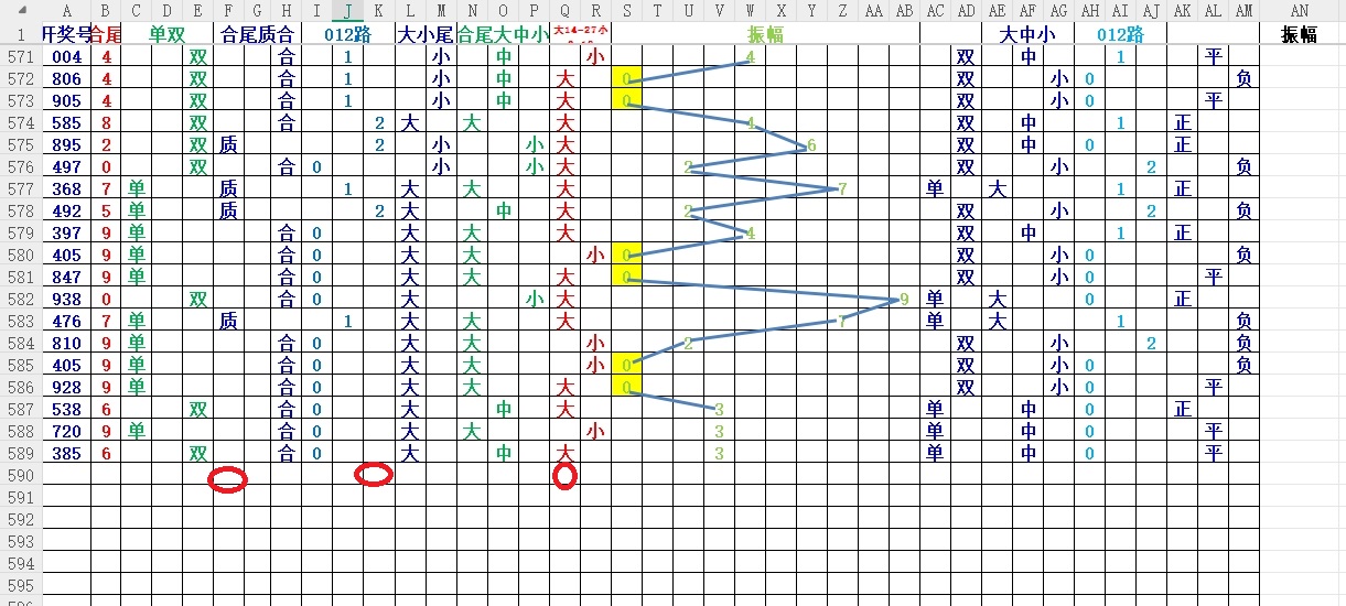 如上图56,012路分析。0369路号出胆,039中出,重点39胆码