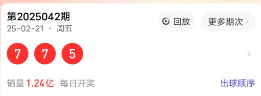 2025042期开奖号码为775,奇偶值为3奇;大小值为3大;012路走势为112路;跨度为2跨;和值19点;组三形态。