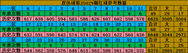 2025027期三区比是:2:3:1,进入2025年后三区比是:49:68:51,历史次数三区比是:6626:6648:6370。