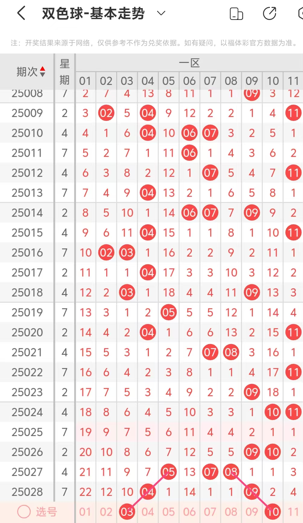 一区01-11号走势可参考号码:03号是遗漏0期的偶三连03-04-05走势;10号是遗漏0期的三连08-09-10走势。