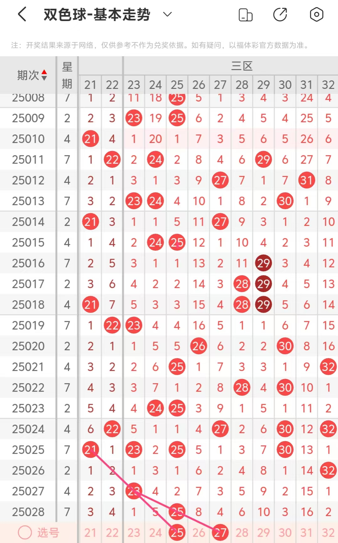 028期开出的是25号,最近历史三区单独开出25号是在24142期,24145期跟出的是30 33号。